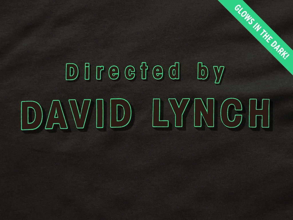 An homage to the late, great David Lynch. Hand screen printed (using glow in the dark ink) on a faded brown long sleeve shirt.