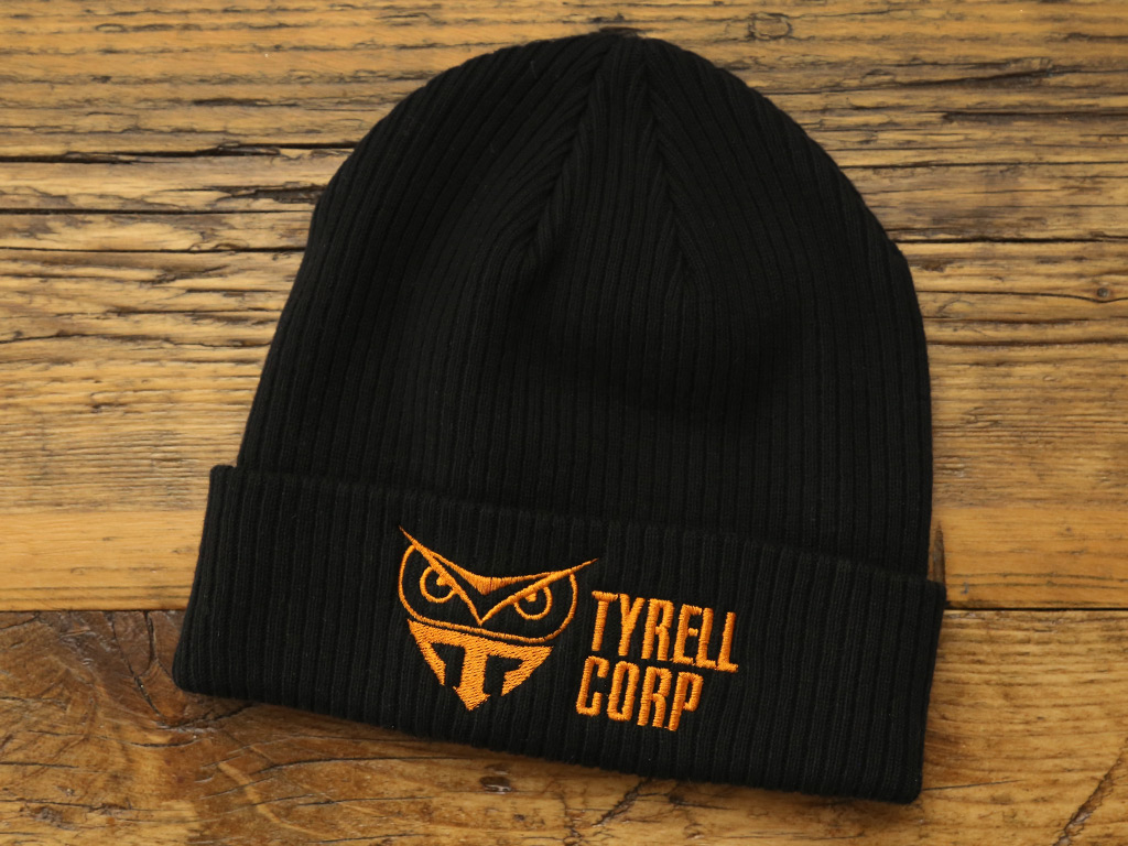 A ribbed single layer knitted folded Beanie with embroidered design and made from 100% organic cotton. One size fits all. Inspired by the fictional company featured in the film, Blade Runner, the 1982 American-Hong Kong neo-noir science fiction film directed by Ridley Scott, and starring Harrison Ford, Sean Young, Edward James Olmos and Rutger Hauer. Please remove any tags carefully preferably with scissors.